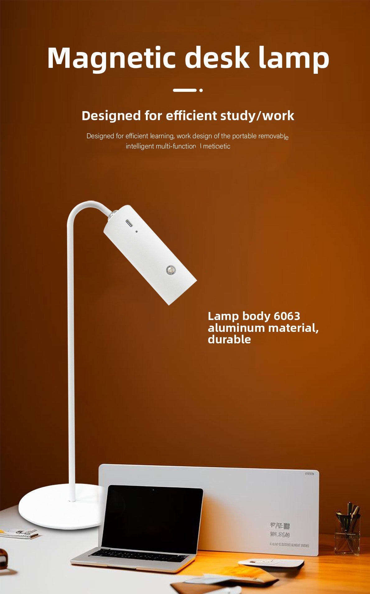 Elevate your workspace with this versatile Magnetic Desk Lamp. Designed with a 2W dimmable touch control, it offers the perfect flicker-free, eye-caring light for late-night reading or focused study sessions. Whether clamped to your bedframe or standing on your desk, its powerful rechargeable battery ensures up to 60 hours of continuous use. Sleek, portable, and built for comfort.